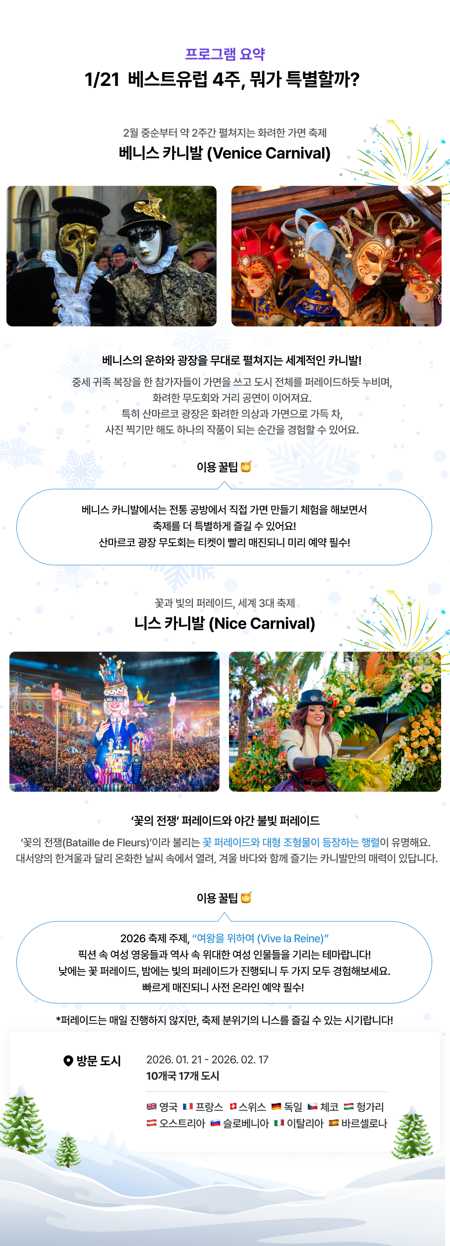 - 프로그램 정원이 모두 모집 되어 프로그램이 마감된 경우, 취소 요청 시점과 관계없이 30일~20일 이전 기준(계약금 환불 불가/위약금 15%/항공, 숙소, 유레일 등 별도 변경 및 취소 수수료 부과)으로 적용됩니다.