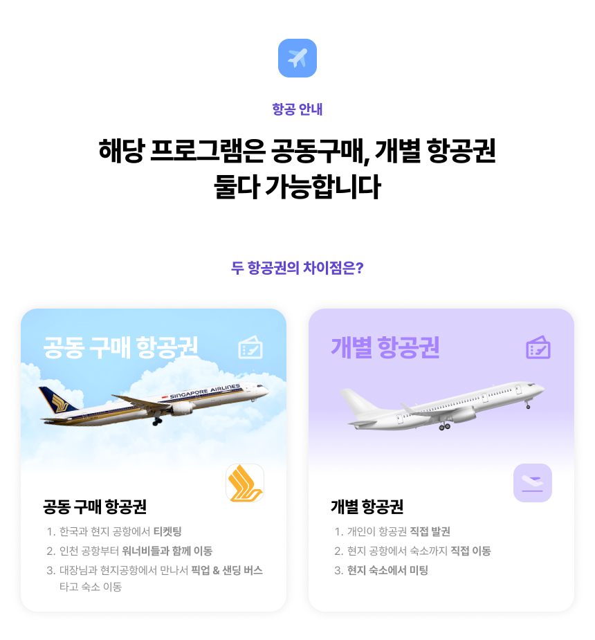 ‼ 개별 항공 진행 시 [공항 ↔ 숙소] 픽업&샌딩 버스는 불포함 항목입니다.