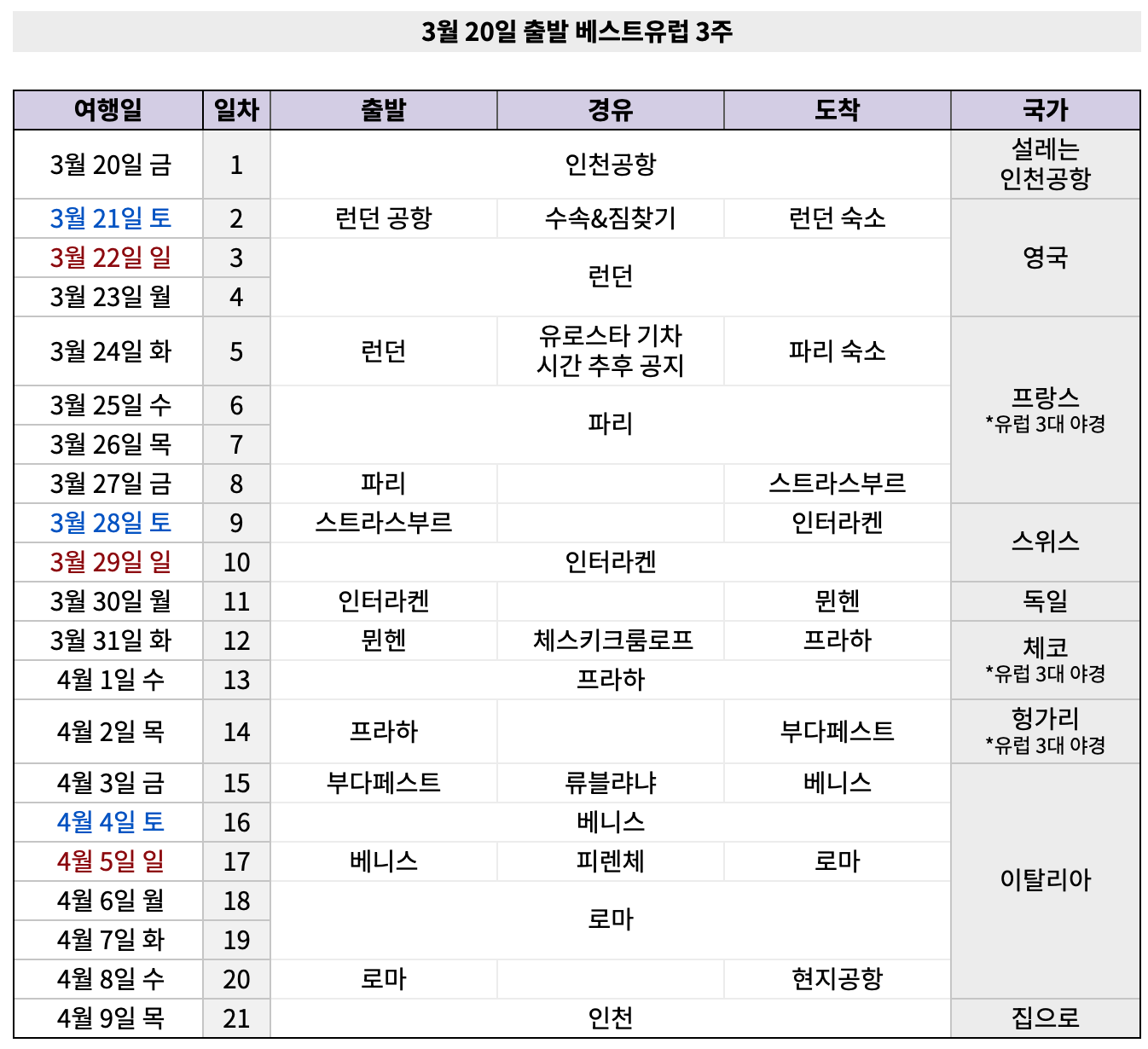 베스트유럽 3주