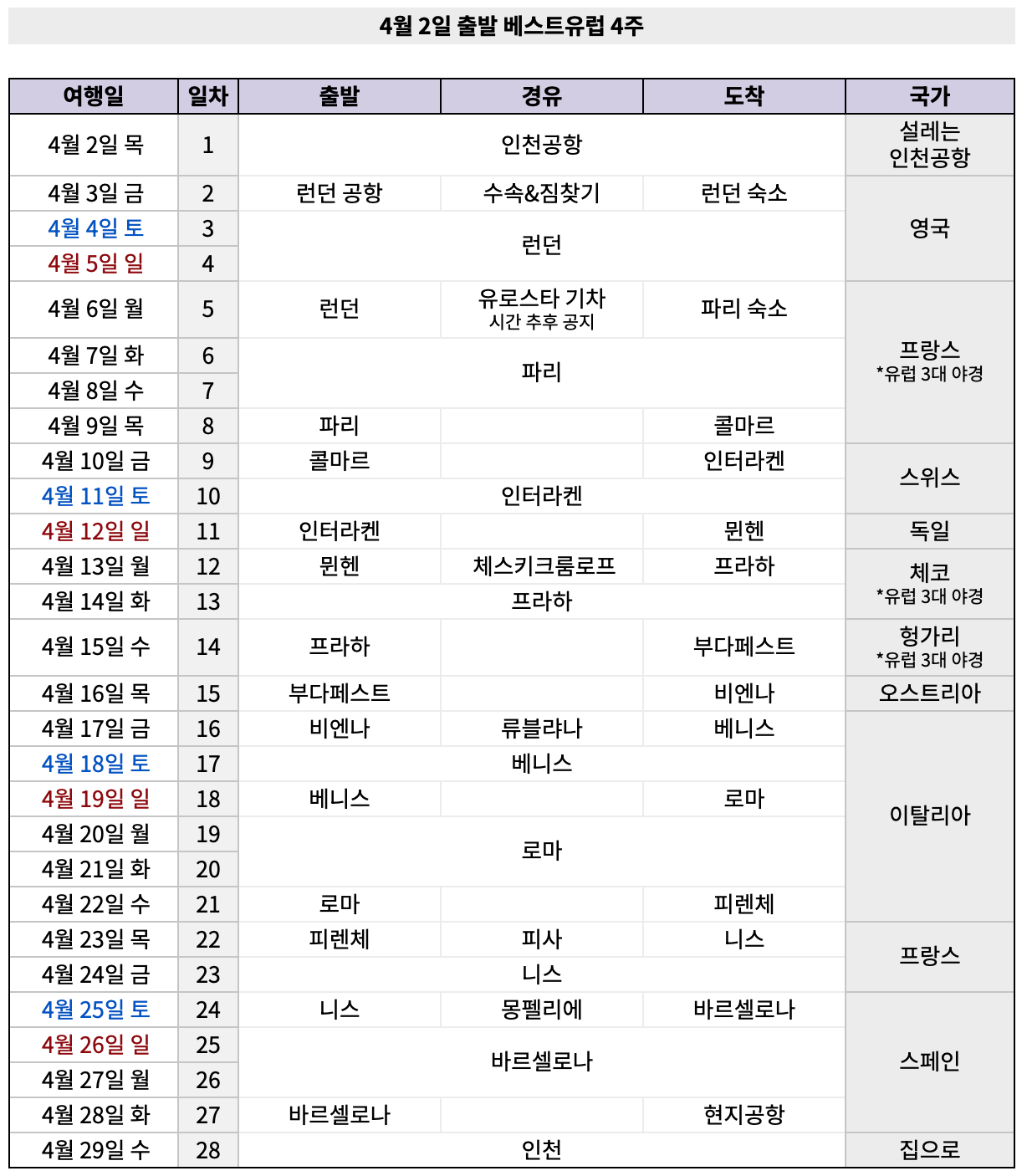 스위스 제외 전 일정 2인 1실🏰 으로 여유로운 여행