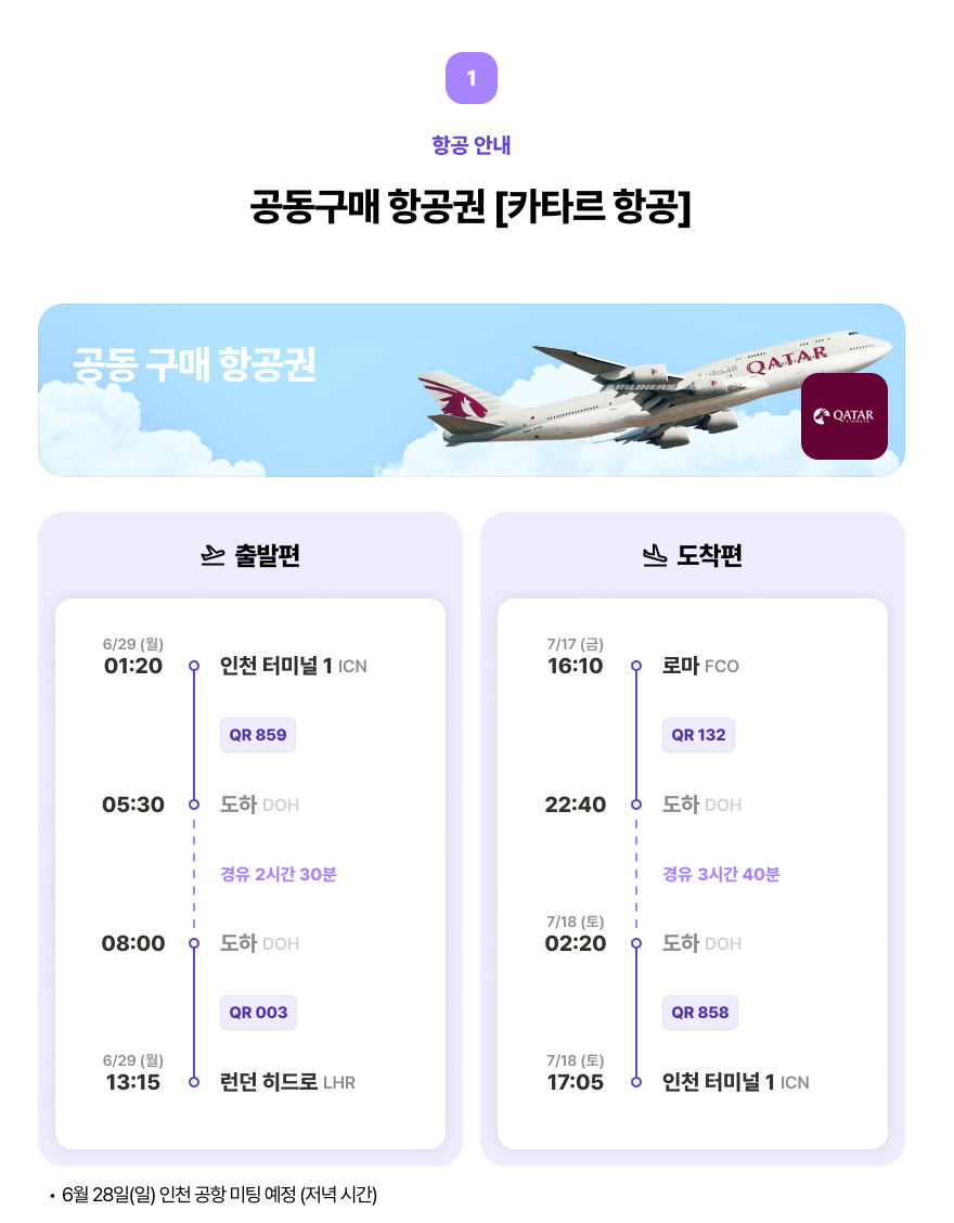 미팅 장소는 현지 숙소이며, 단체 항공 일정에 맞춰 체크인 해야 합니다!