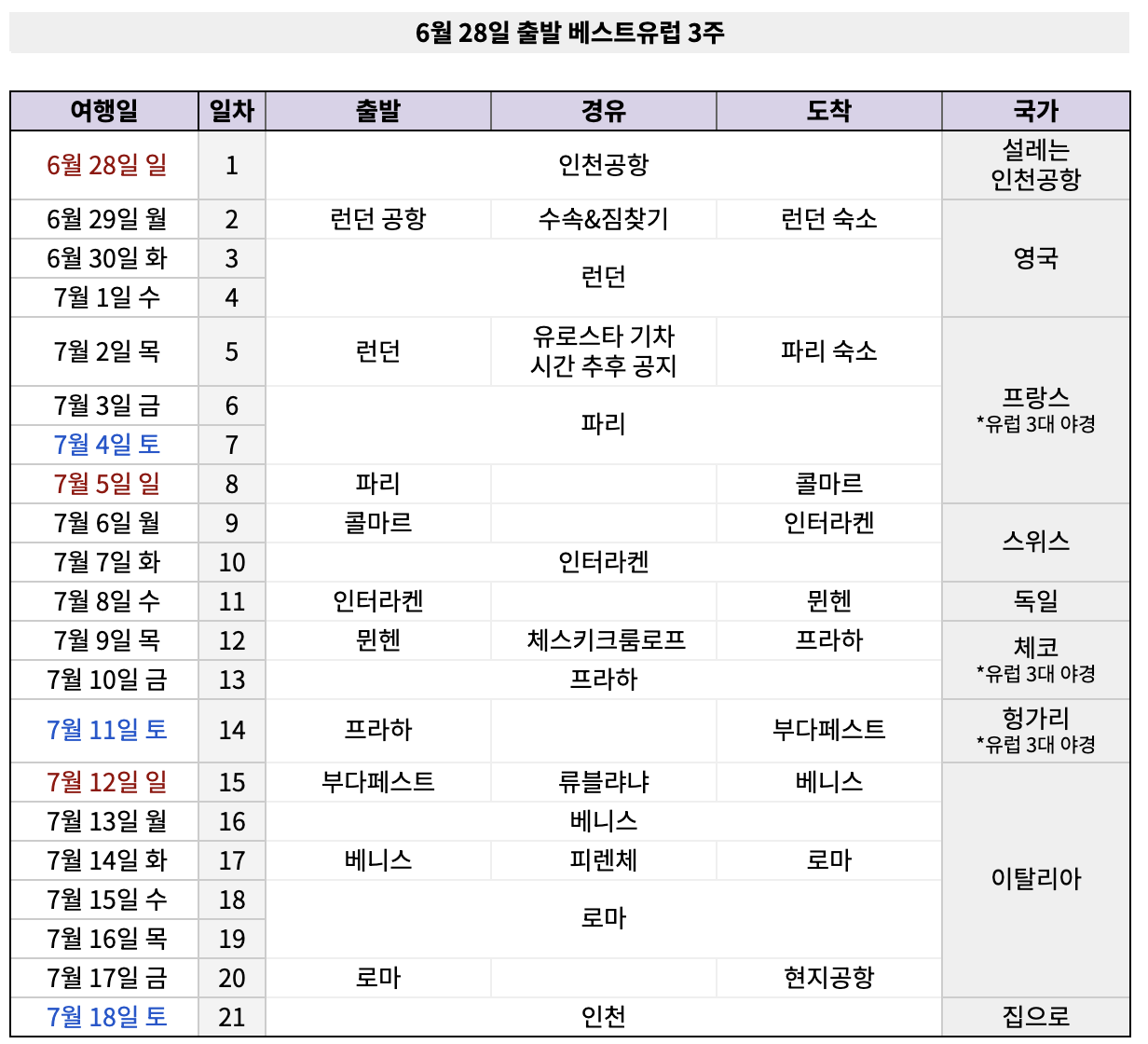 베스트유럽 3주