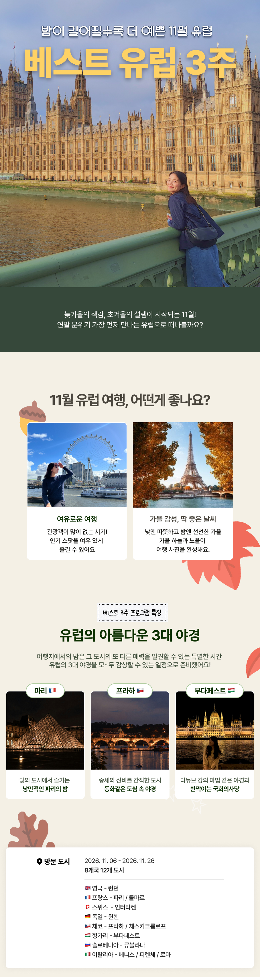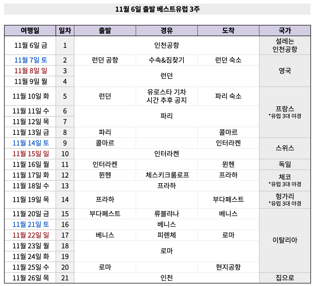 항공 / 숙소 / 유레일 등 별도 변경 및 취소 수수료에 따라 부과