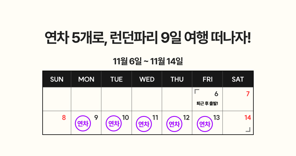 7. 일에 치여 직장 권태기가 왔어요,, 😢 리프레쉬 타임이 필요합니다!