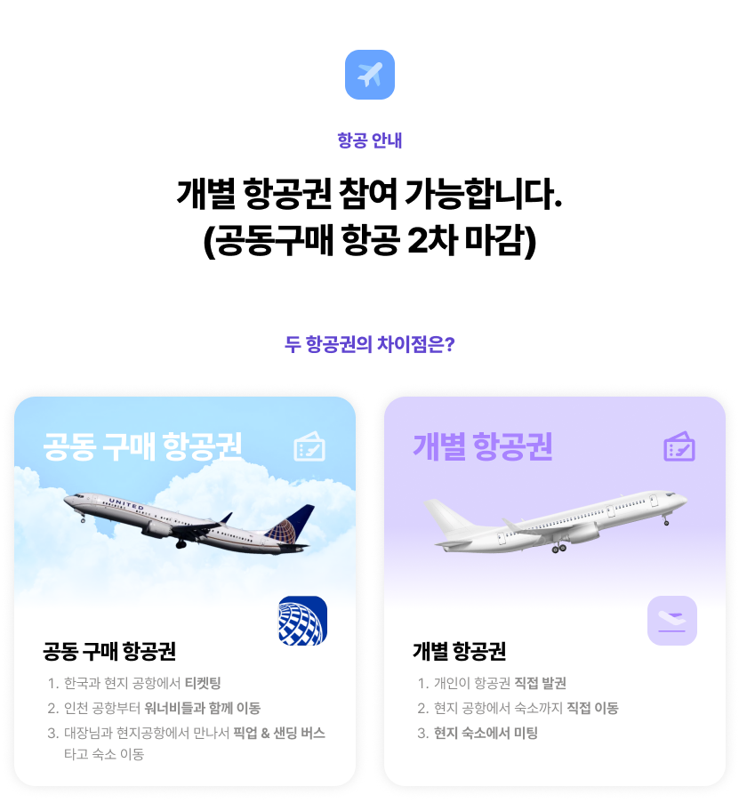 ‼ 개별 항공 진행 시 [공항 ↔ 숙소] 픽업&샌딩 버스는 불포함 항목입니다.