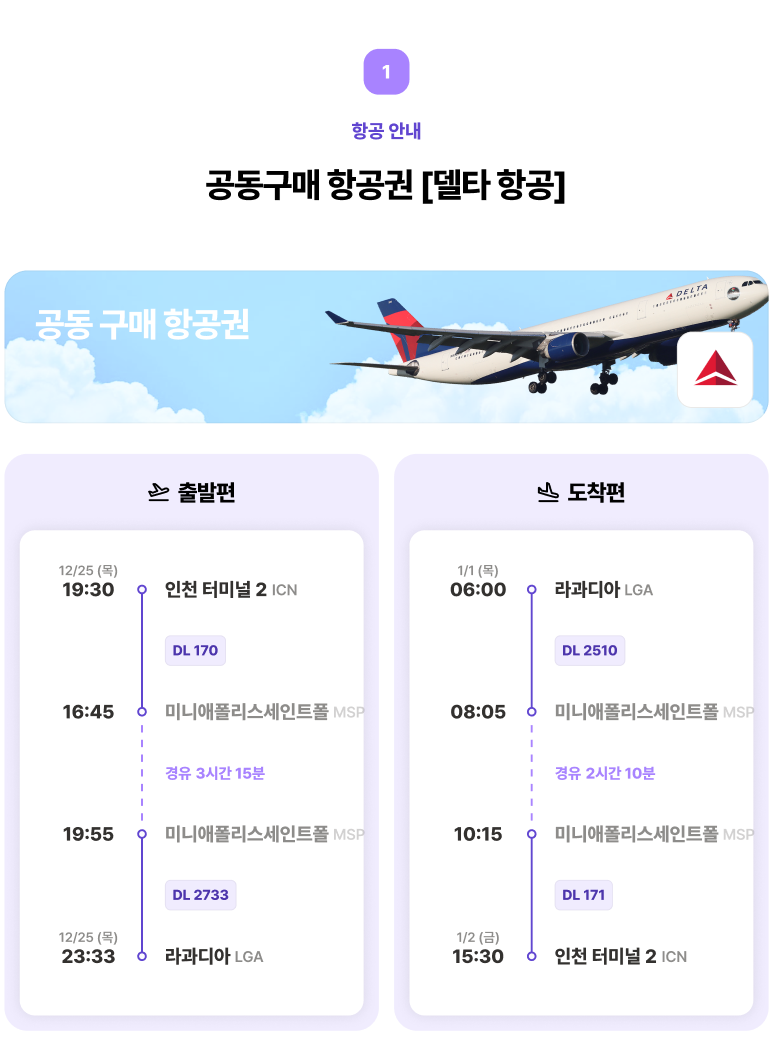 ‼ 개별 항공 진행 시 [공항 ↔ 숙소] 픽업&샌딩 버스는 불포함 항목입니다.