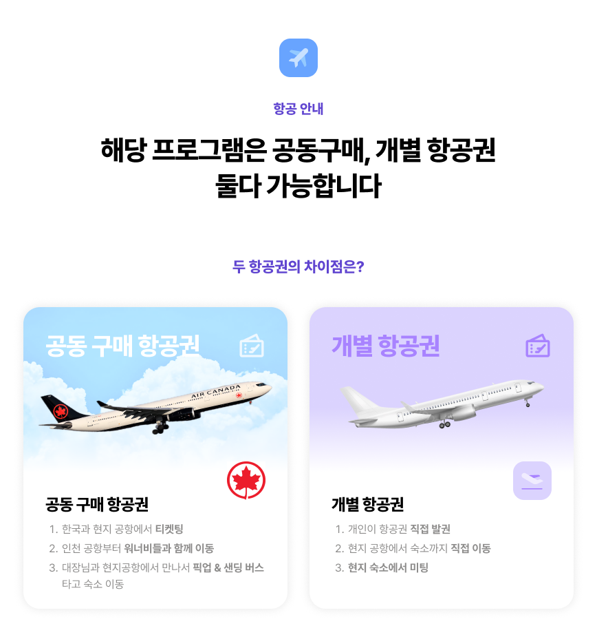 ‼ 개별 항공 진행 시 [공항 ↔ 숙소] 픽업&샌딩 버스는 불포함 항목입니다.