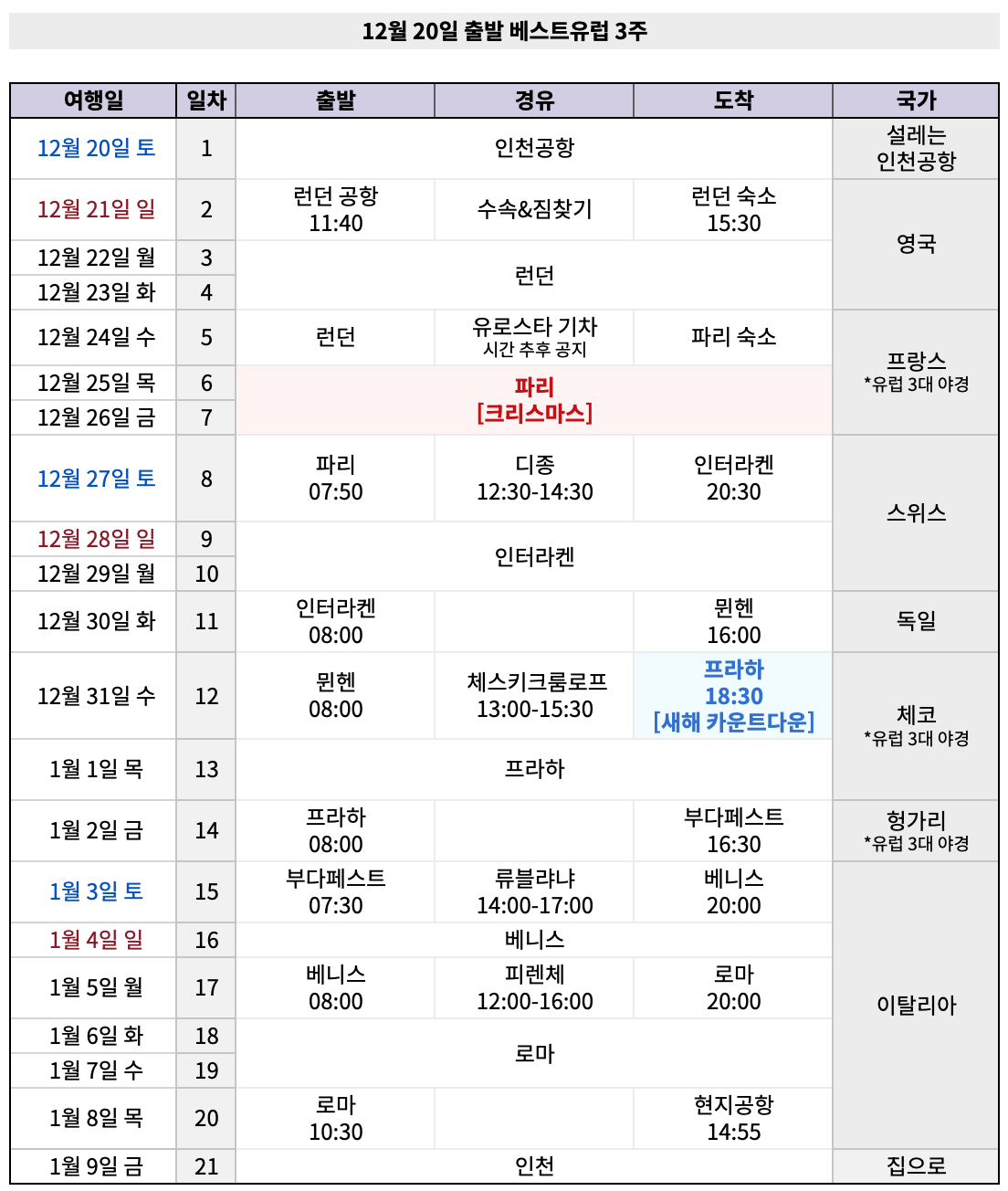 유럽 3주 프로그램