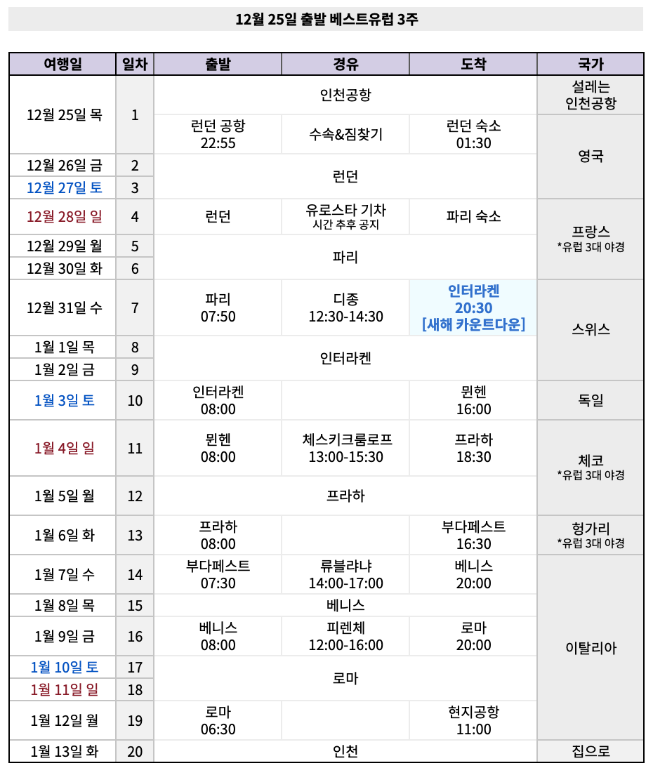 유럽 3주 프로그램