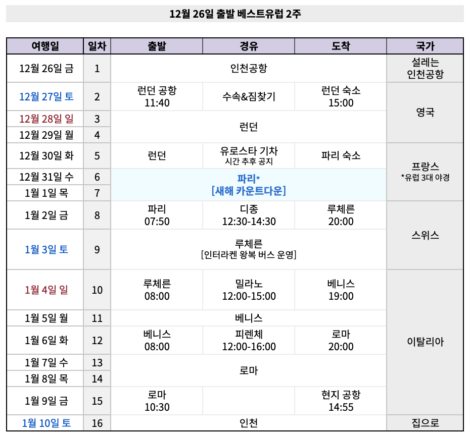 유럽 2주 프로그램