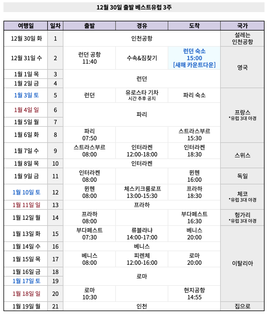 유럽 3주 프로그램
