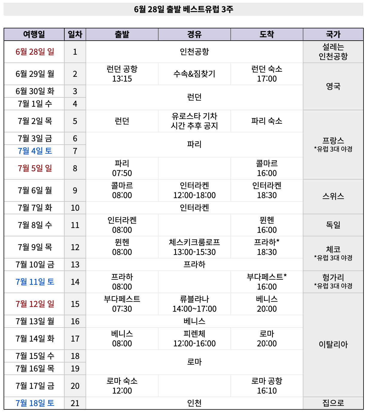26년베스트유럽21일_06/28 출발 팀