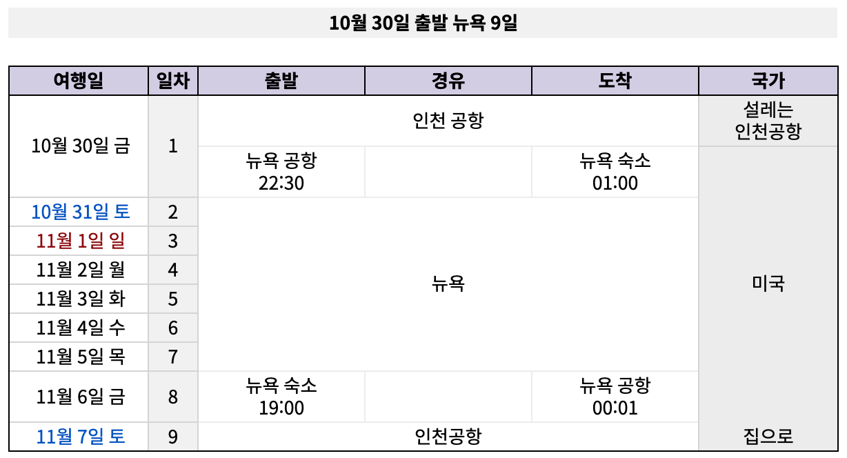 26년 뉴욕 9일_10/30 출발팀