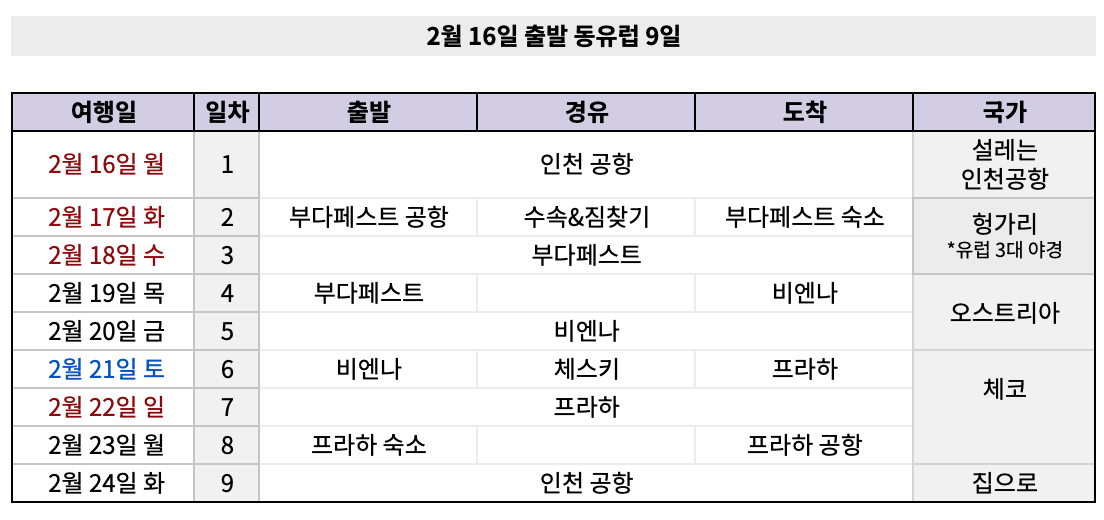 항공 / 숙소 / 유레일 등 별도 변경 및 취소 수수료에 따라 부과