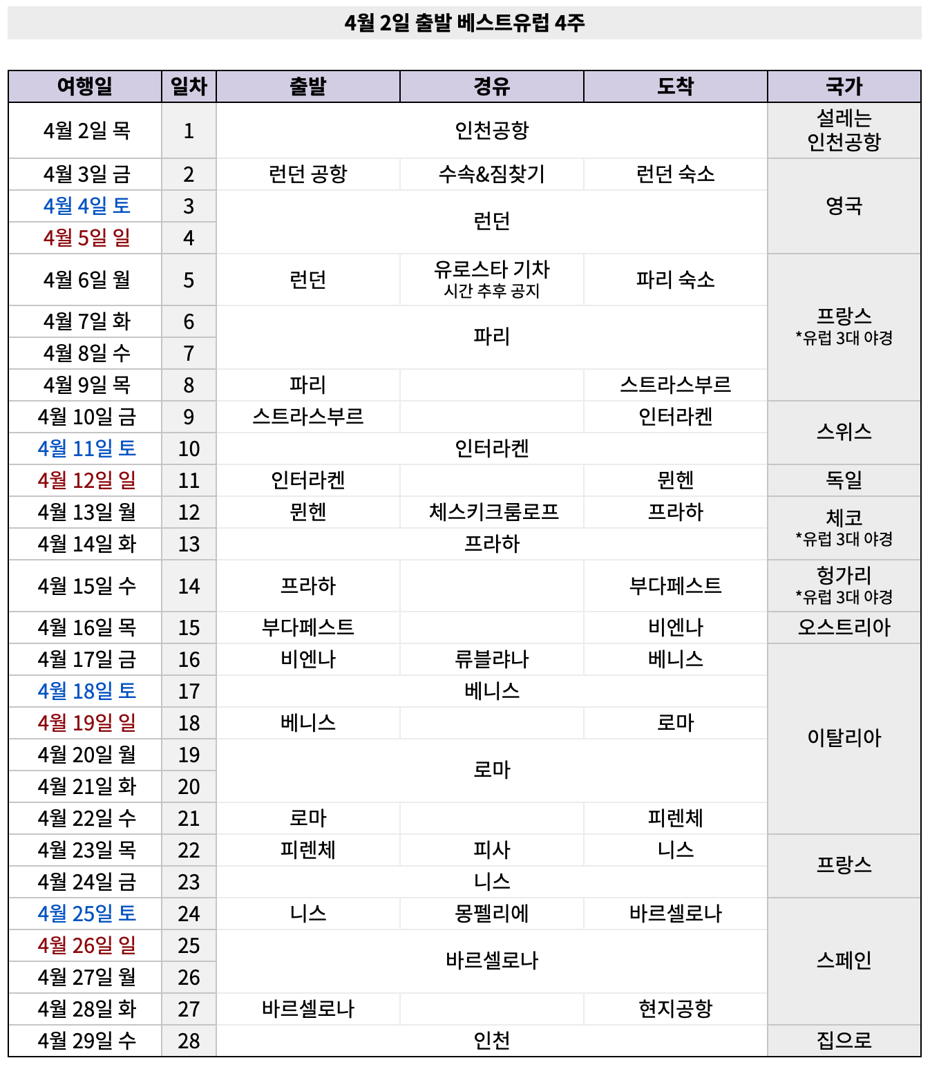 스위스 제외 전 일정 2인 1실🏰 으로 여유로운 여행