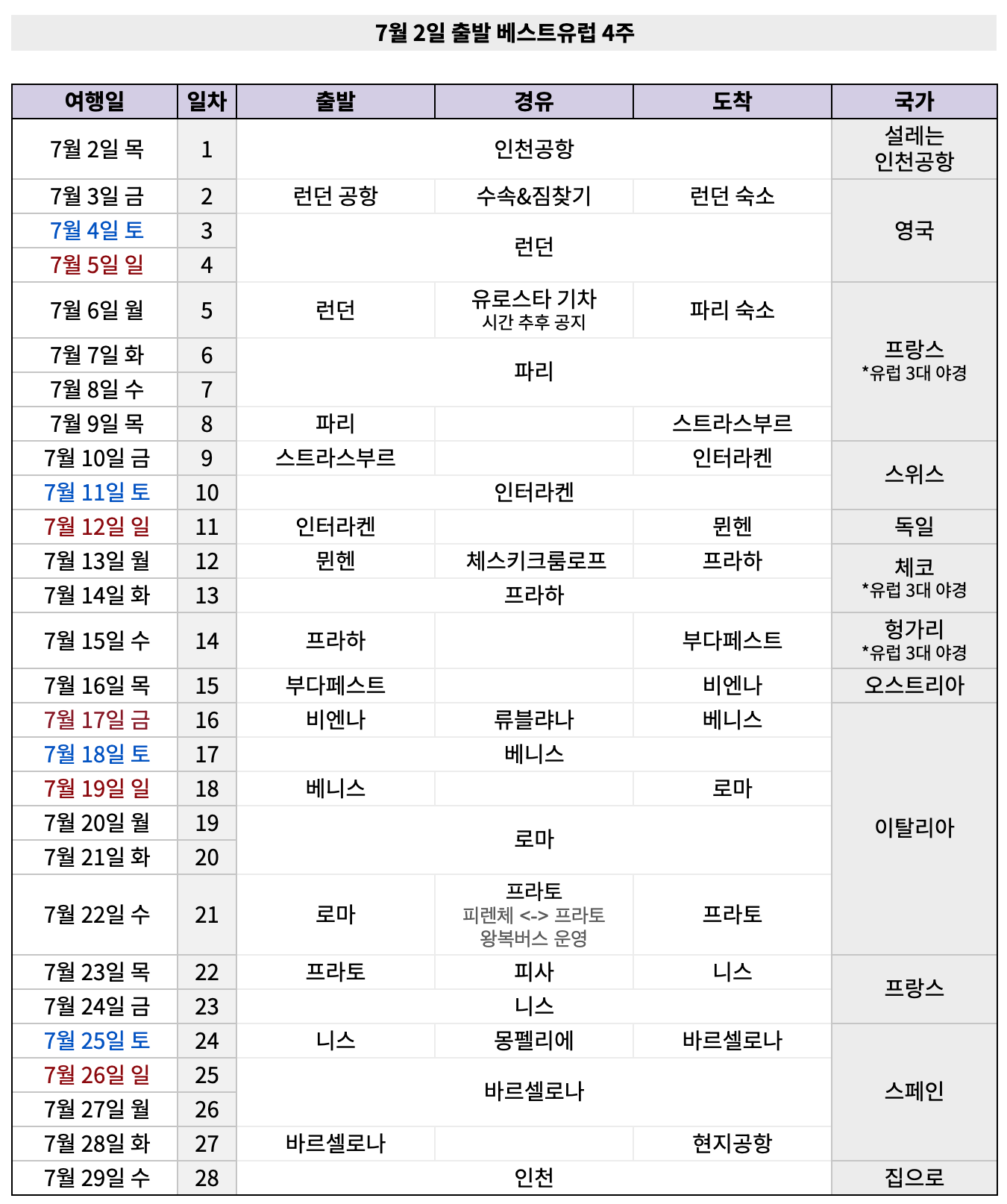 항공 / 숙소 / 유레일 등 별도 변경 및 취소 수수료에 따라 부과
