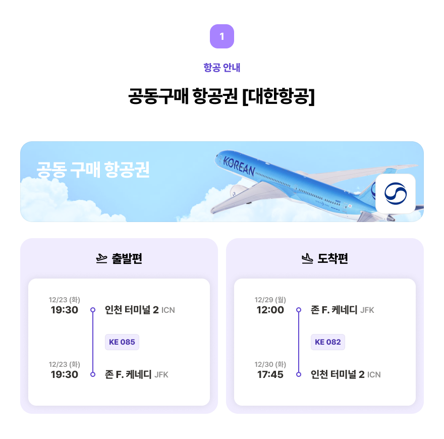 단, 카드 결제의 경우 프로그램비만 결제 가능합니다. 발권대행사를 통해 진행되는 공동구매 항공권은 카드 결제가 불가하며, 현금 결제(가상계좌 1회)로 납부해주시면 됩니다.