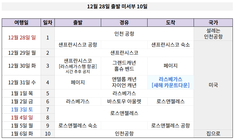 | 🇺🇸미국 | 샌프란시스코, 페이지, 라스베가스, 로스앤젤레스 |