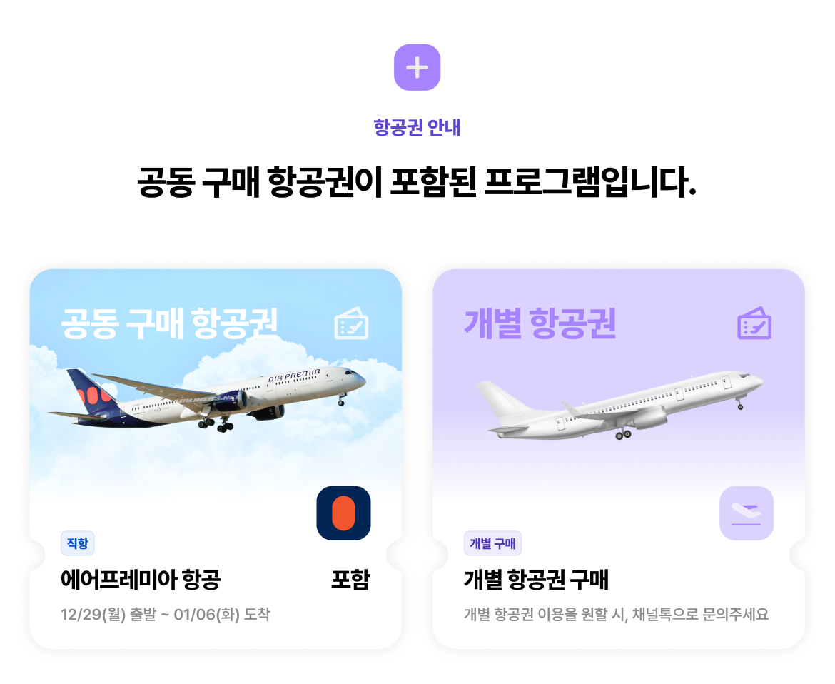 ‼ 개별 항공 진행 시 [공항 ↔ 숙소] 픽업&샌딩 버스는 불포함 항목입니다.
