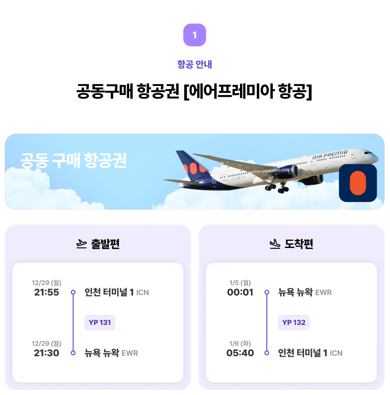 신청 전 팀공지페이지에서 공동구매 항공 일정을 꼭! 확인 후 팀공지페이지를 통해 신청 해주세요!